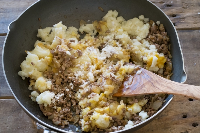 ④マッシュポテトにしたじゃがいもに③を入れて形を整える(約5分)