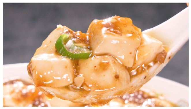 「麻婆豆腐は辛すぎず、味が濃くて辛味がぐーんとくる」「まず最初に甘みがきて、おっやさしいと思っていたら辛さがくる」という麻婆豆腐だそう。四川風というより広東風の麻婆豆腐なのですかね。