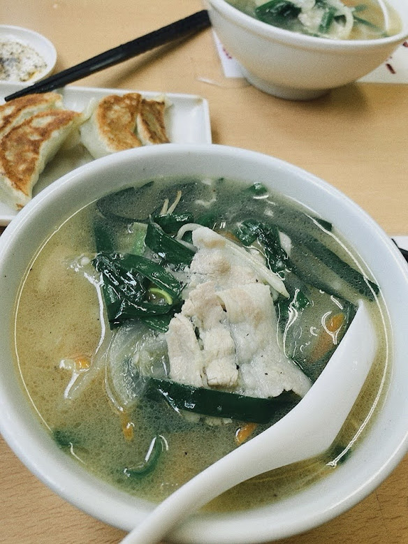 ●チンチンラーメンと餃子を頼み、2人でシェアしようとしたら店員さんが「チンチンラーメン、2つの丼に分けますか?」と言ってくれて分けてきてくれた。