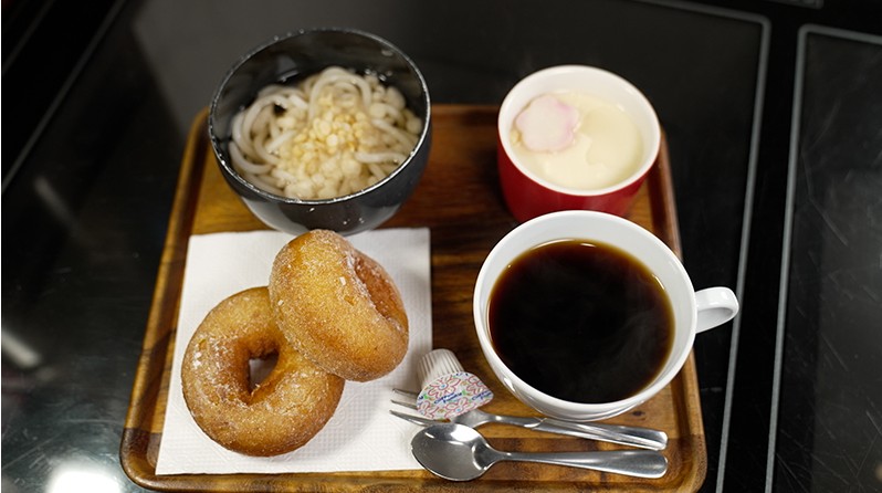 ●定番の茶碗蒸し、うどん、ドーナツという異色の組み合わせのモーニングがある。