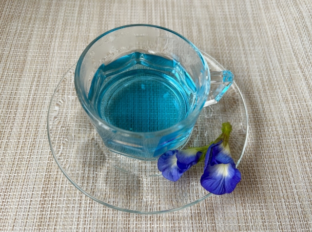 崇子さんのおススメはバタフライピーという青い色がつくハーブがおすすめだそうで、オススメはバタフライピーを入れて飲むレモニーミント。レモンの香りとミントで割と飲みやすいそうです。